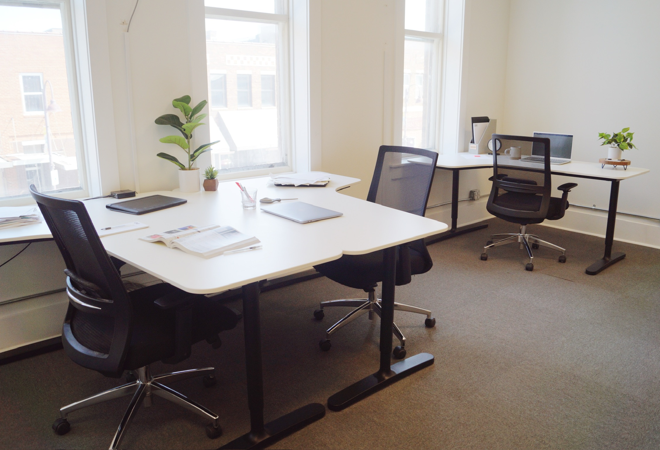 A non-dedicated desk allows you to choose from available desks on a first-come first-serve basis. Includes 24/7 monthly access.